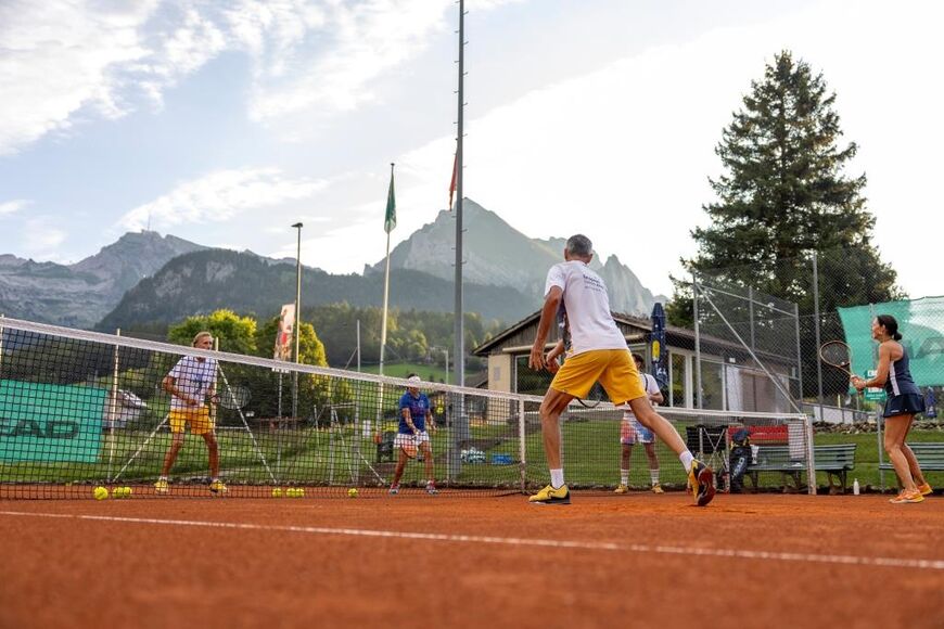 Nebenbei verbringen Sie Bilderbuchferien im Toggenburg zwischen Churfirsten und Säntis, zwischen 1000 und 2500 Metern über Meer. Denn neben dem Tennis können Sie wandern, biken, schwimmen, klettern, spielen, singen und jauchzen. Oder auch ganz in Ruhe in der Sonne sitzen und einfach schauen und hören, entspannen und das Leben so richtig geniessen!